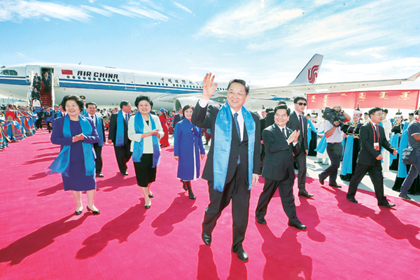 俞正声率中央代表团飞抵呼和浩特出席内蒙古自治区成立70周年庆祝活动