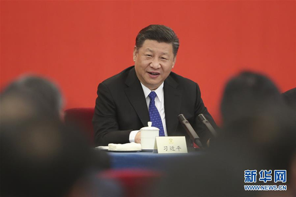 3月4日下午,中共中央总书记、国家主席、中央军委主席习近平看望参加全国政协十三届一次会议的民盟、致公党、无党派人士、侨联界委员,并参加联组会,听取意见和建议。中共中央政治局常委、全国政协十三届一次会议主席团会议主持人汪洋参加看望和讨论。新华社记者 李学仁 摄 新华社北京3月4日电 中共中央总书记、国家主席、中央军委主席习近平3月4日下午看望了参加全国政协十三届一次会议的民盟、致公党、无党派人士、侨联界委员,并参加联组会,听取意见和建议。他强调,中国特色社会主义进入新时代,要求我们坚定不移巩固和发展中国共产党领导的多党合作和政治协商制度,发挥多党合作独特优势,发展社会主义民主政治,为决胜全面建成小康社会而团结奋斗。我国各民主党派、无党派人士要增强“四个自信”,增强政治定力,积极建言献策,广泛凝心聚力,为决胜全面建成小康社会、夺取新时代中国特色社会主义伟大胜利作出新的更大贡献。 中共中央政治局常委、全国政协十三届一次会议主席团会议主持人汪洋参加看望和讨论。 联组会上,曹卫星、闫小培、周忠和、李卓彬、吴为山、陈超、高鸿钧、高杰等8位委员,围绕深化改革开放、做好未建交国家工作、推进科技评价体系改革、发挥侨资侨智作用、用经典作品构建人类命运共同体、构建离岸创新创业新模式、建立良性有序人才流动机制、发挥侨智助力创新型国家建设等问题作了发言。