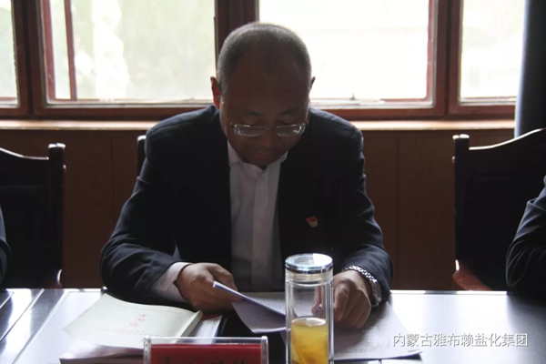 1025上午,内蒙古雅盐化集团公司党委召开了“不忘初心、牢记使命”主题教育推进会。会议由公司党委书记、董事长孙刚德志主持,公司领导班子成员、中层以上管理人员参会,旗委主题教育第三指导组组长王守祯到会指导。