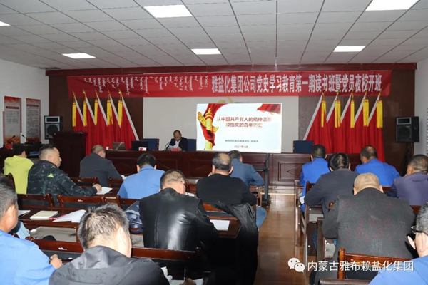19:30分,开班仪式正式开始,公司党委书记、董事长孙刚德和阿右旗党校教研室主任张耀华共同为党员夜校揭牌。